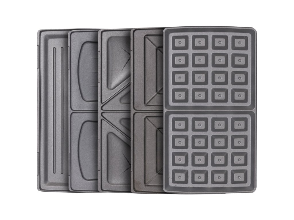 5 výměnných desek na pečení 137 x 228 mm (trojúhelníkový, čtvercový a lasturový tvar desek pro sendviče, panini, vafle)