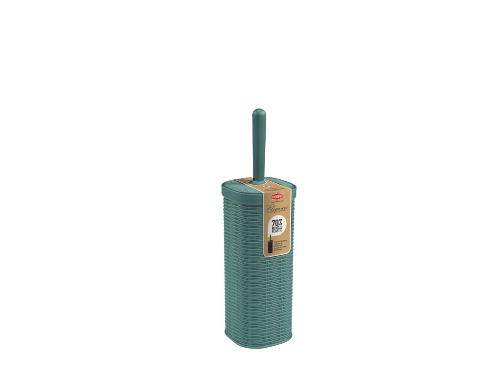 Toaletní kartáč s držákem o rozměrech 11,5 × 11,5 × 40 cm je vyroben z 70% recyklovaného plastu a je 100% recyklovatelný, což z něj činí ekologicky šetrnou volbu pro domácnost.