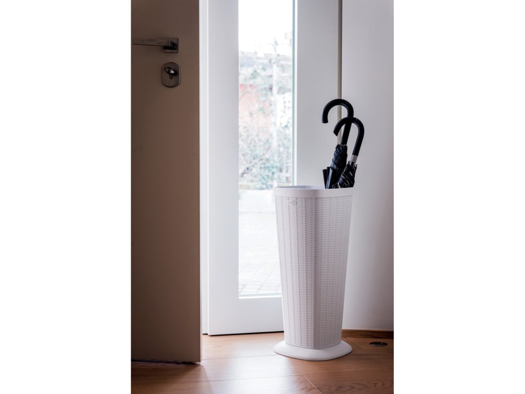 Stojan na deštníky Elegance je praktickým a designově čistým doplňkem do předsíně, chodby nebo kancelářských prostor. Díky plastové konstrukci s jemnou strukturou připomínající tkaninu působí moderně a elegantně. Lehký, ale stabilní tvar zajišťuje bezpečné uložení více deštníků najednou. Ve spodní části stojanu se nachází drenážní otvory pro odvod vody, které pomáhají udržet okolní podlahu suchou.