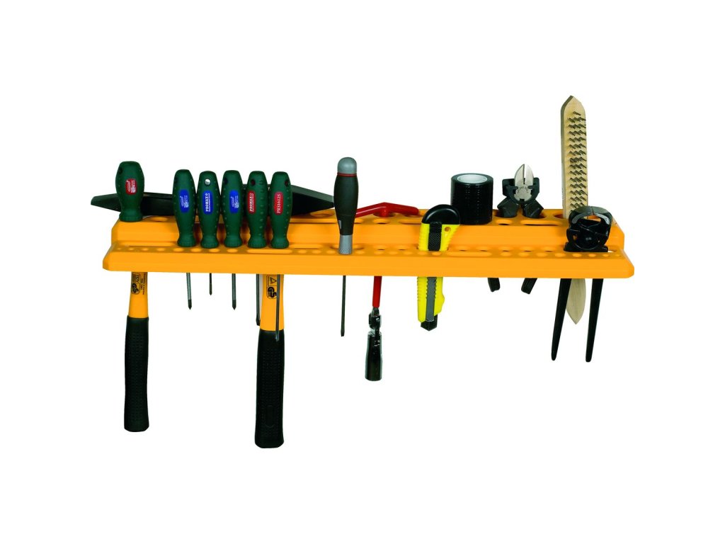Pomoci tohoto držáku budete mít všechno vaše nářadí pěkně po ruce a přehledně uspořádané. Díky tomu ušetříte spoustu času, který byste jinak věnovali neustálému hledání jednotlivých druhů nářadí. Stačí si ho tedy namontovat na stěnu ve vaši dílně nebo garáži a naplnit vašim nářadím. Pro toto nářadí je držák již vybaven otvory různých velikostí. Navíc je vyroben z polypropylenu, což je plně recyklovatelný materiál v souladu s legislativou REACH.