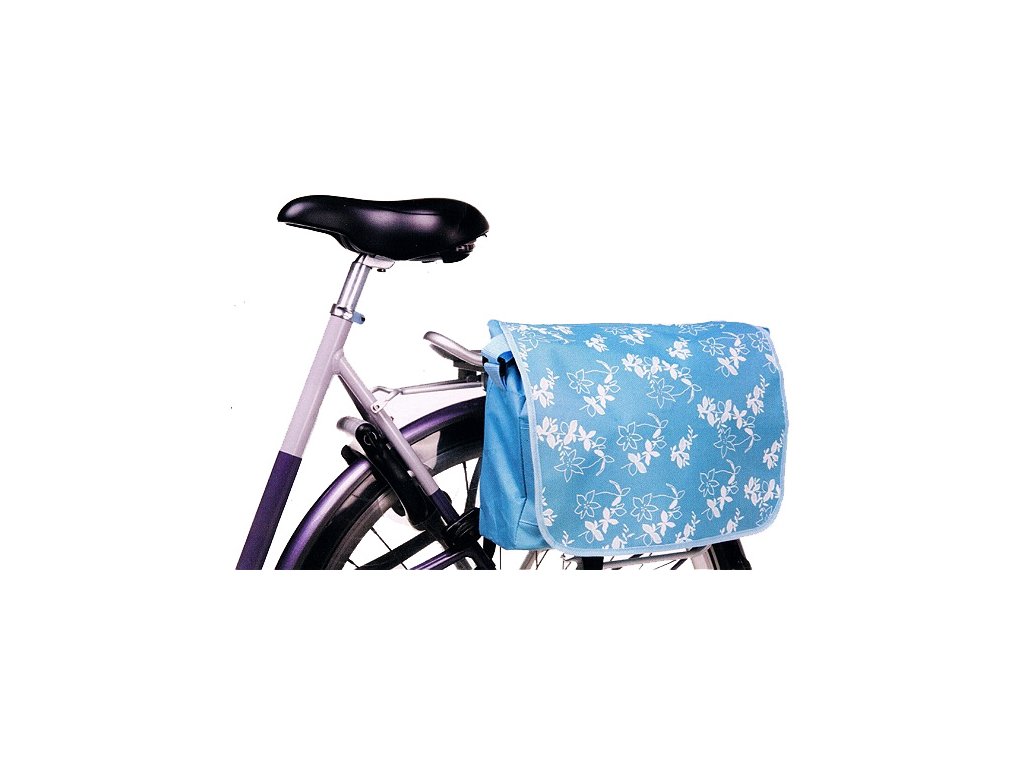 Taška na kolo s úchyty na nosič a s nastavitelným popruhem pro běžné nošení přes rameno.