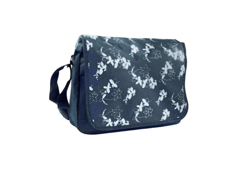 Taška na kolo s úchyty na nosič a s nastavitelným popruhem pro běžné nošení přes rameno.