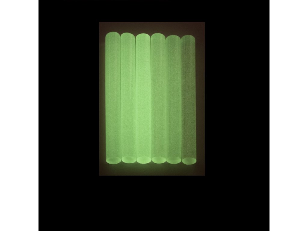 průměr: 11mm délka: 100mm množství: 6ks svítivé - teplota tavení 83 - 176 _C - doba tuhnutí 30 - 40 s - použití : na plasty, papír, dřevo - transparentní s efektem - po nasvícení ve tmě svítí
