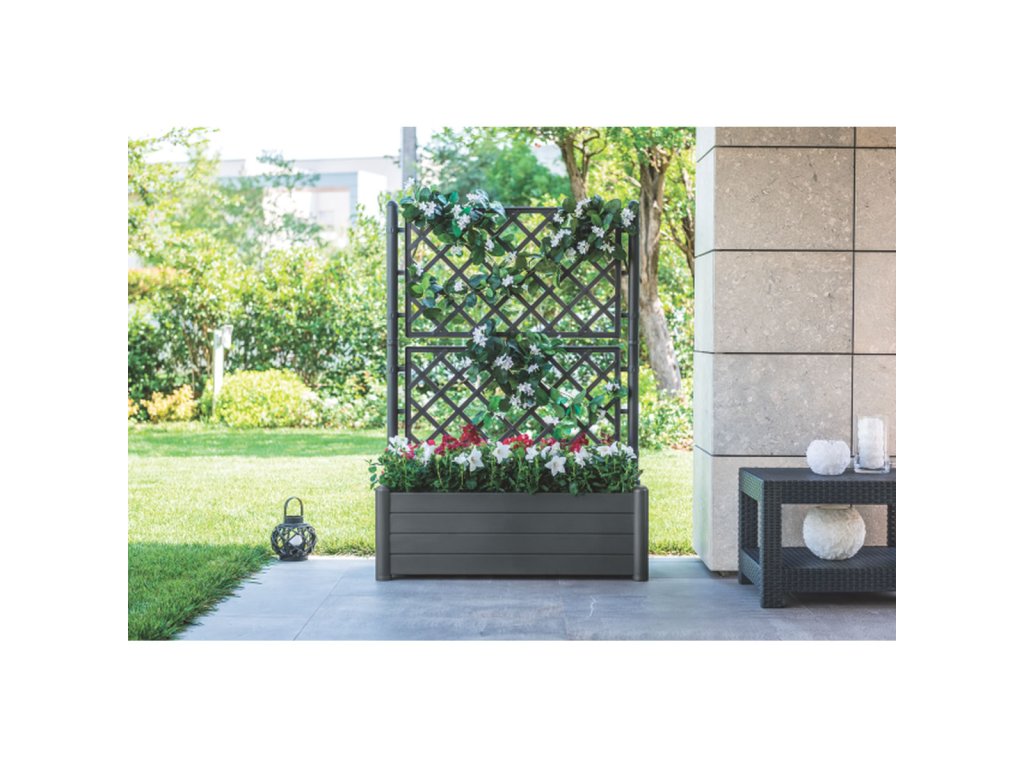 Truhlík disponuje drenážním dnem, které zabraňuje přelití rostlin a zajišťuje optimální odvodnění. Mřížka je ideální pro pěstování popínavých rostlin, jako jsou rajčata, okurky nebo okrasné liány.