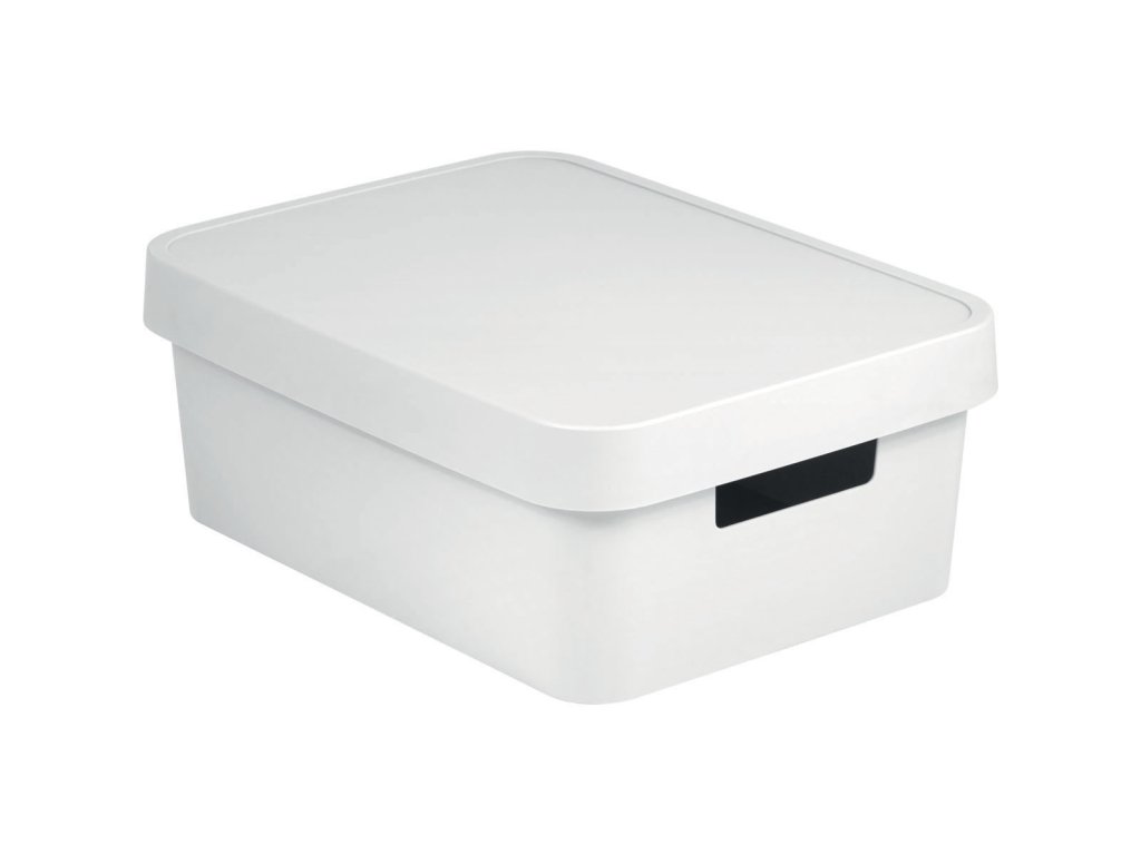 Střední velikost s objemem 11 l se perfektně vejde do polic, skříní, komod i otevřených regálů. Ideální na textilie a prádlo, hračky, kosmetiku a drogerii, kancelářské potřeby, kuchyňské doplňky i drobnosti v předsíni.