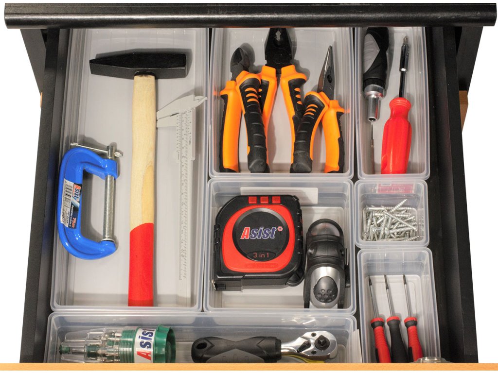 Transparentní provedení s šedým protiskluzovým dnem Non-Slip a protiskluzovou spodní částí (aby box lépe držel). Boxy jsou snadno omyvatelné a při čištění oceníte, že nemusíte najednou vyndat celou zásuvku věcí, ale pouze to co potřebujete uklidit. Dělení boxů umožňuje ze zásuvky např. v kanceláři, dílně nebo pro vaše hobby vyndat jen ten box, který potřebujete a mít jej při ruce.