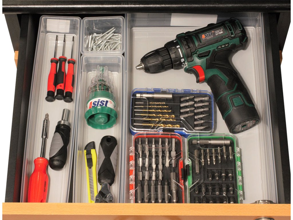 Každý z úložných boxů má jiné rozměry, aby si každý mohl vybrat podle svých potřeb. Rozměry boxů jsou záměrně vyrobeny tak, aby se jejich kombinací daly celkově skládat do prostoru čtverce nebo obdélníků pro maximální využití prostoru zásuvek.