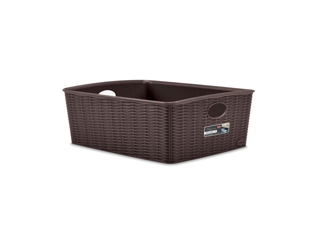 Elegance M High je vyšší varianta oblíbeného úložného koše z kolekce Elegance. Díky větší hloubce nabízí více úložného prostoru a je ideální pro organizaci domácnosti, koupelny, kanceláře nebo šatníku. Koš je vyroben z kvalitního plastu s jemnou texturou povrchu, která připomíná tkaninu, což mu dodává elegantní vzhled. Je lehký, pevný, snadno omyvatelný a díky svému tvaru dobře zapadne i do polic nebo zásuvek.