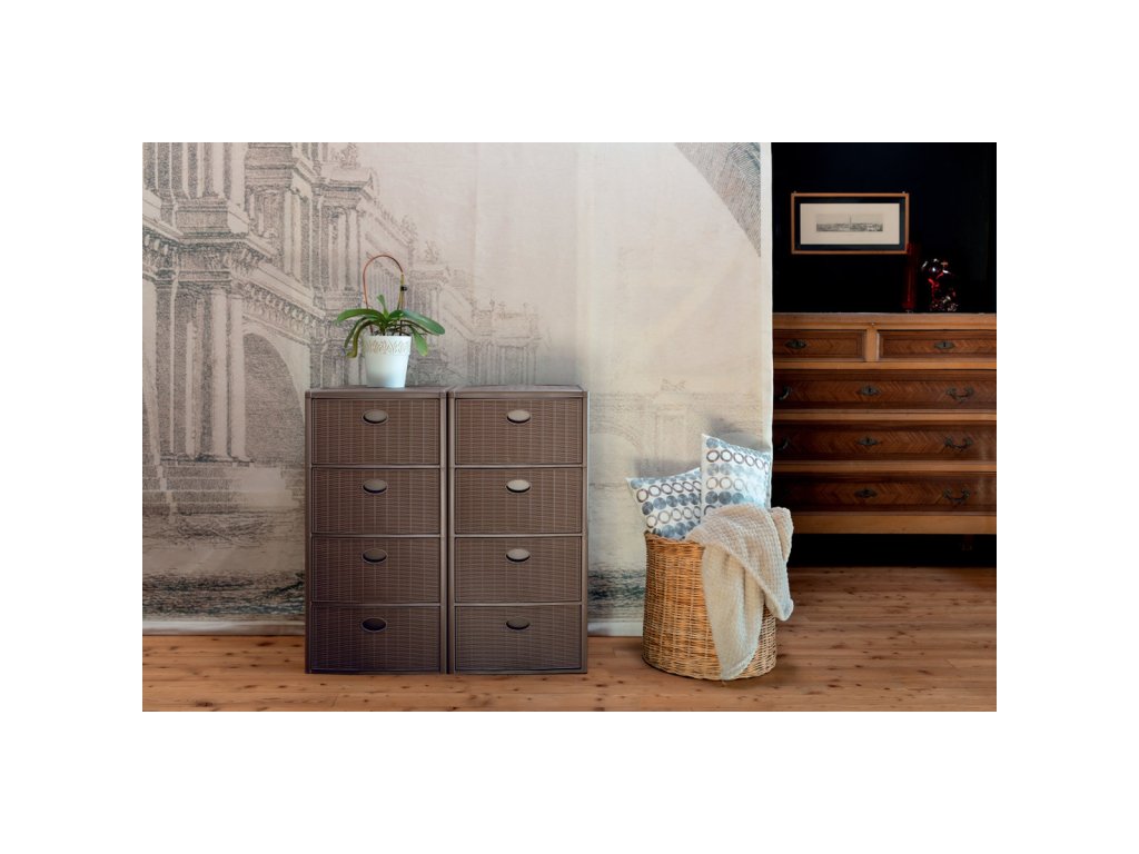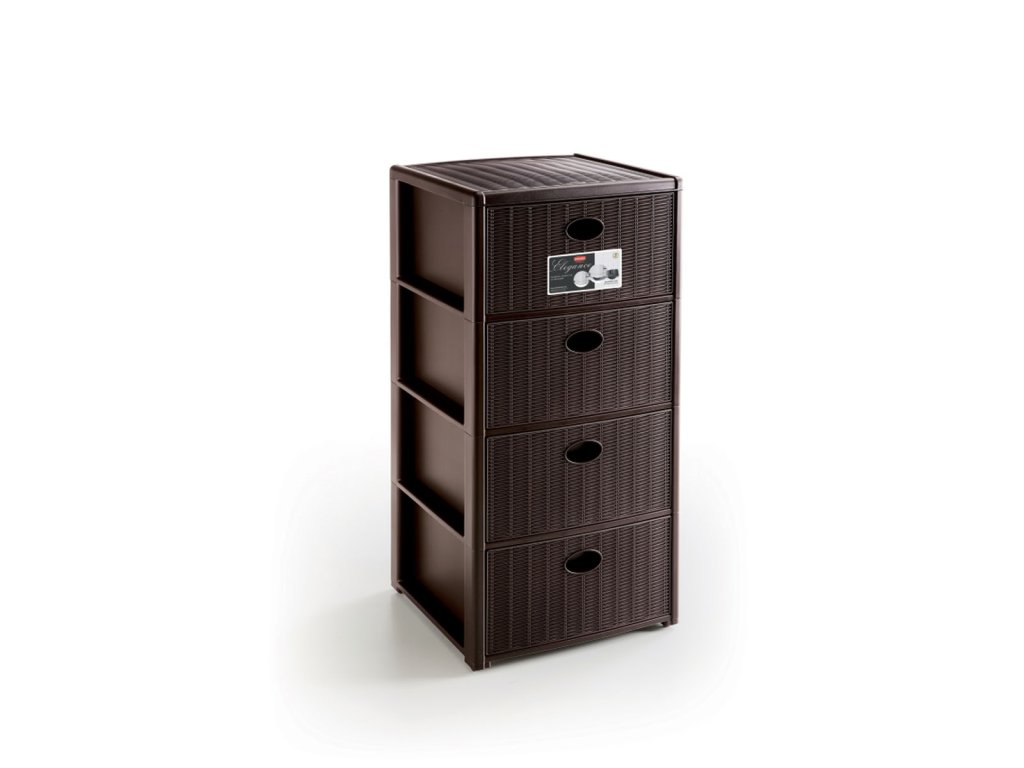 Úložný plastový regál Elegance, 4 zásuvky, hnědý