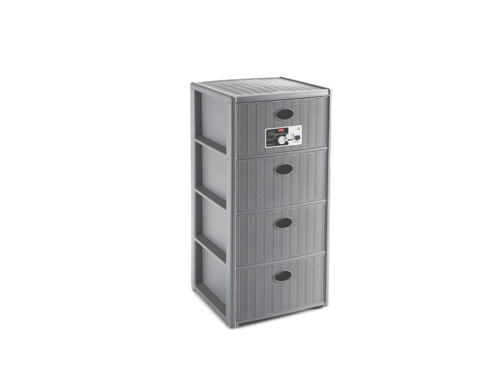 Úložný plastový regál Elegance, 4 zásuvky, šedý