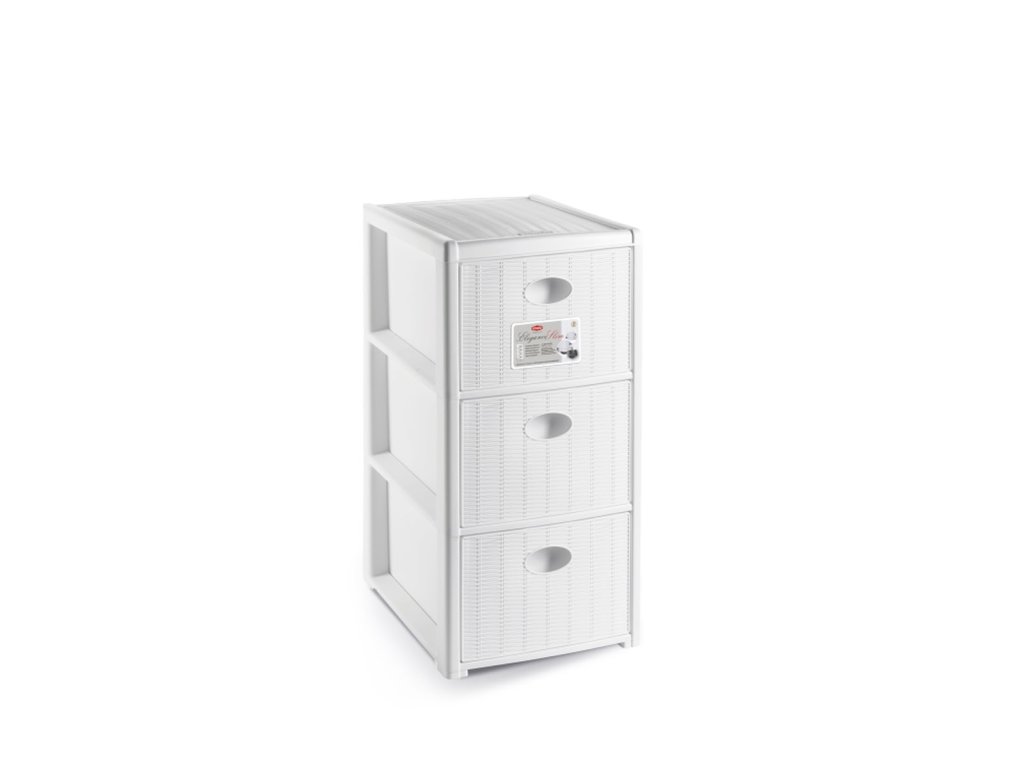 Úložný plastový regál Elegance Slim, 3 zásuvky, bílý