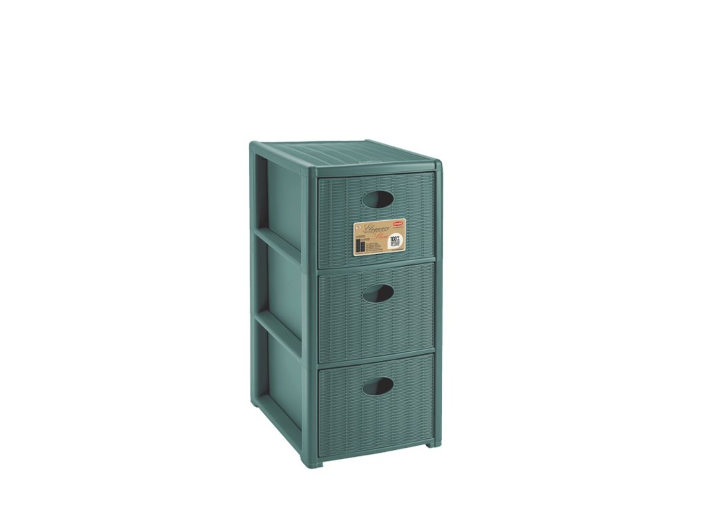 Praktická a ekologická úložná skříňka vyrobená z recyklovaného plastu, ideální pro domácí organizaci v koupelně, ložnici nebo kanceláři. Nabízí tři prostorné zásuvky a štíhlý tvar, díky kterému se vejde i do úzkých prostor. Povrchová struktura imituje tkaninu a dodává skříňce moderní a elegantní vzhled. Zásuvky se snadno vysouvají, konstrukce je lehká a stabilní, materiál odolný a snadno omyvatelný. Skříňka je navíc udržitelnou volbou pro každodenní použití.
