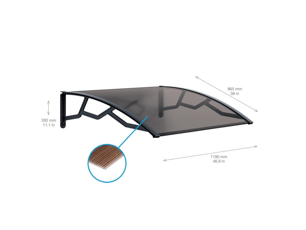 Vchodová stříška 96,5 x 119 cm, kouřová