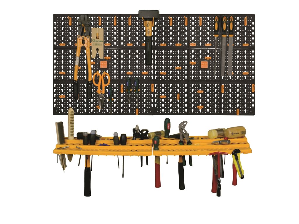 Využití: zavěšení ručního a elektrického nářadí, zahradního náčiní, kabelů a hadic, hobby potřeb, sportovních pomůcek, čisticích prostředků a doplňků pro dílnu či domácnost.