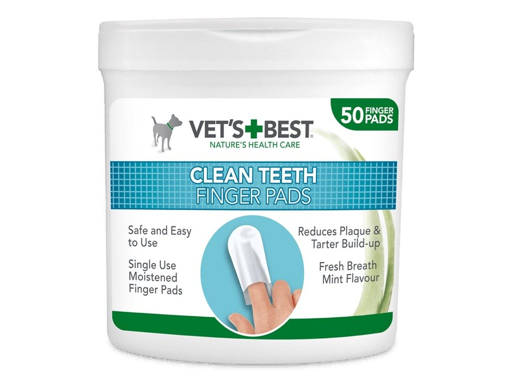 Vet‘s Best čisticí tampony na zuby pro psy jsou alternativou klasického čištění zubním kartáčkem a pastou. Poskytují účinný způsob čištění zubů psů a udržují dobrou hygienu ústní dutiny. Pravidelné používání může pomoci kontrolovat tvorbu plaků, přispět ke snížení vzniku zubního kamene a podpořit čerstvý dech. Tyto speciálně navržené náprstky jsou bezpečné a snadno použitelné, což umožňuje majiteli pejska jednoduchým otřením vyčistit zuby domácího mazlíčka. Pro dosažení nejlepších výsledků doporučujeme používat denně.