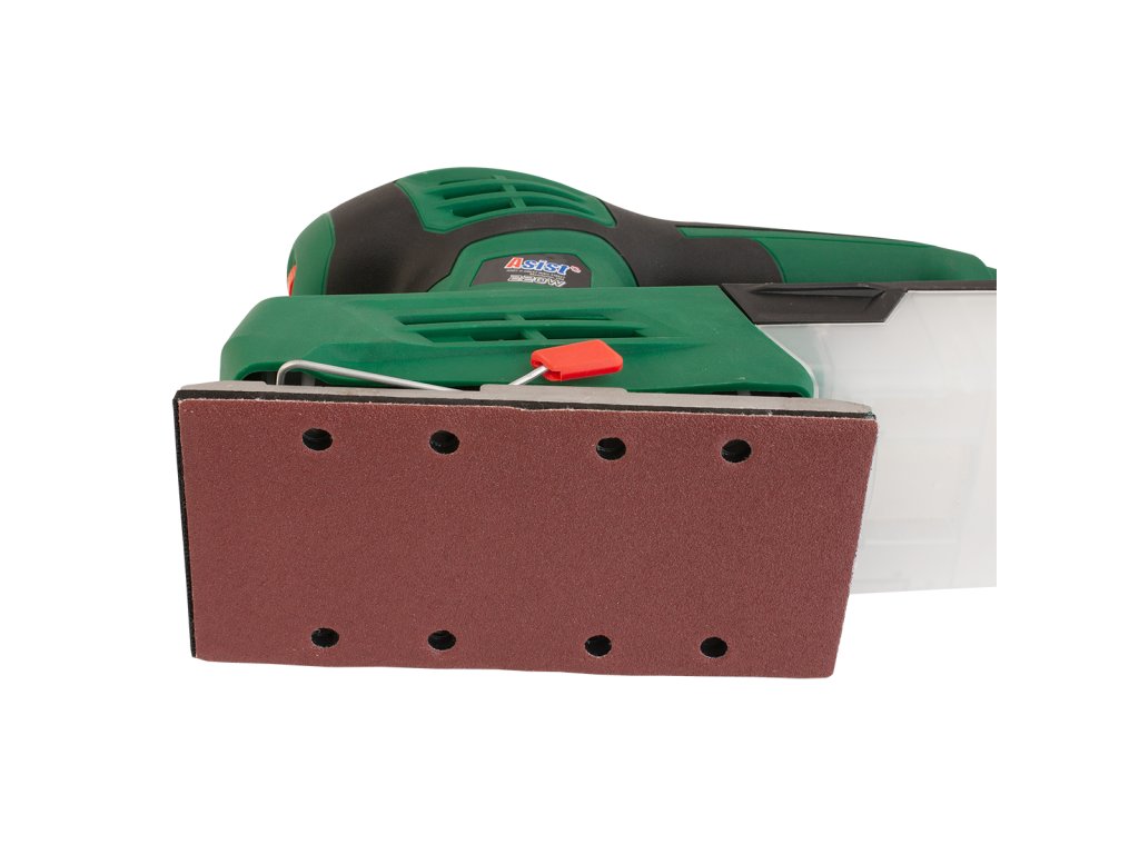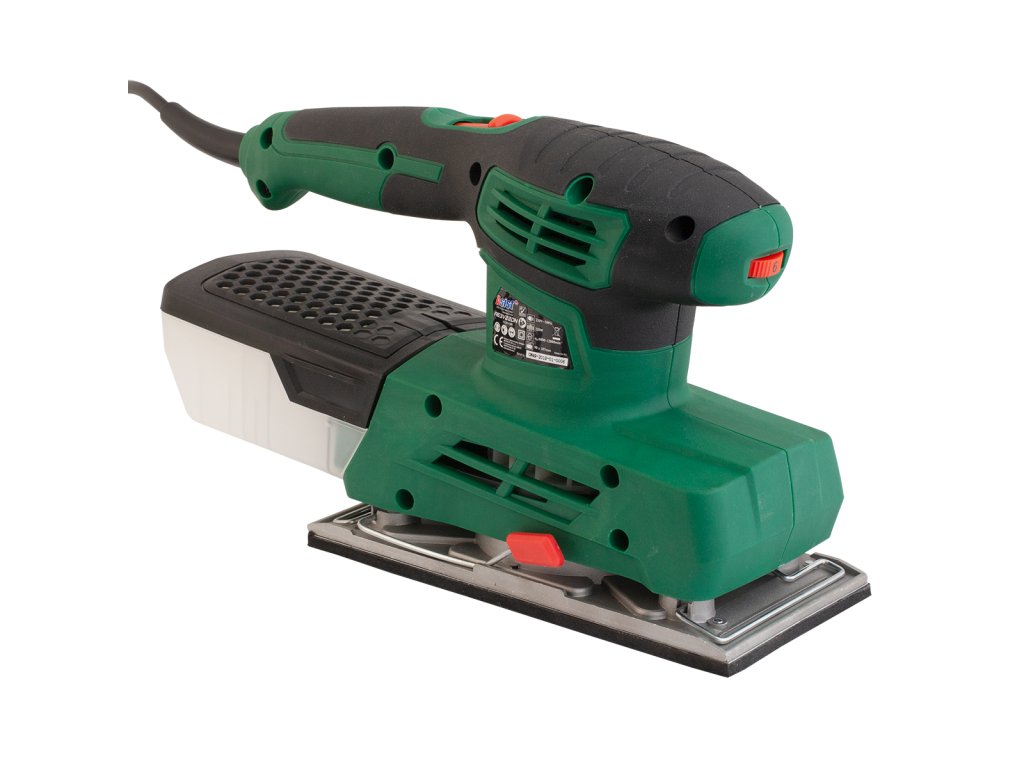 Vibrační bruska s výkonem 220W velmi snadno obrousí požadovaný materiál podle hrubosti zrna brusných papírů. Díky rukojeti soft grip je držení vibrační brusky stále pohodlné i při delším broušení.