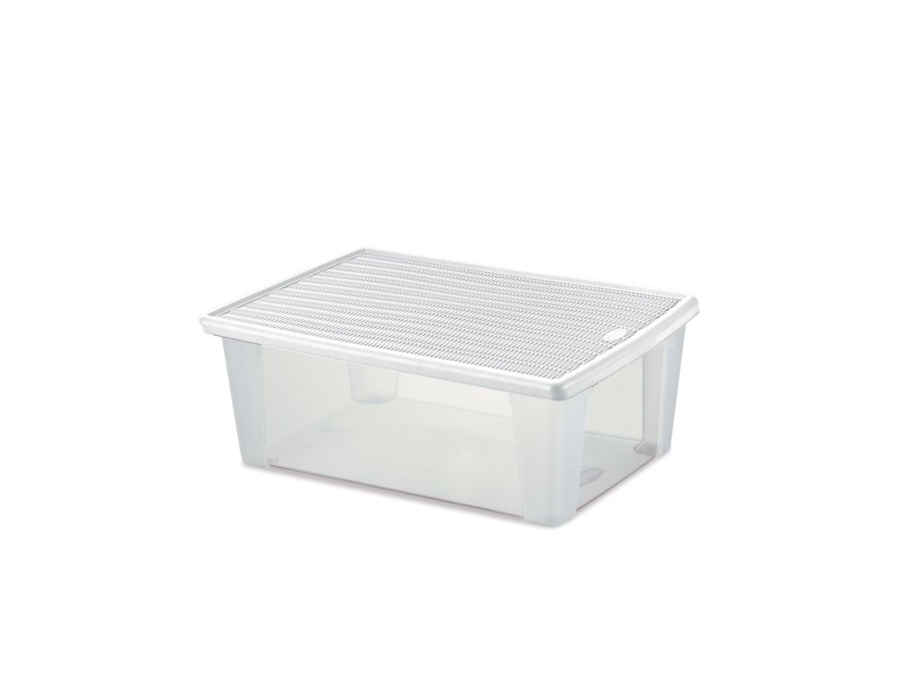 Stylový a praktický box s víkem, ideální pro organizaci domácnosti, kanceláře nebo koupelny. Je vyroben z kvalitního plastu s texturovaným povrchem připomínajícím tkaninu, který dodává moderní vzhled. Díky uzavíratelnému víku chrání obsah před prachem a nečistotami. Box je vhodný pro uložení dokumentů, drobného textilu, kosmetiky nebo kancelářských potřeb. Je lehký, pevný a snadno omyvatelný.