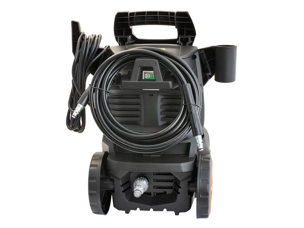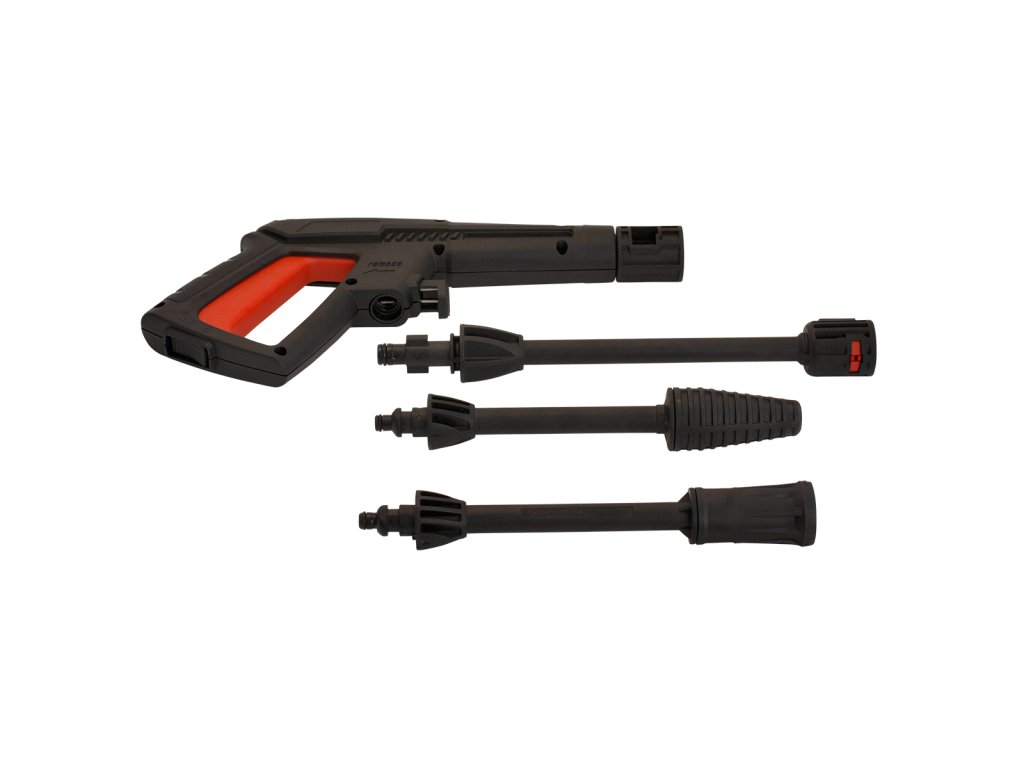 Jeho výhodou je, že má ve výbavě variotrysku, pomocí které snadno nastavíte požadovaný proud vody. Proud tak můžete směřovat pod velkým tlakem do jediného bodu, nebo naopak vytvořit plochý proud vody. Hák na zavěšení kabelu a pistole na tělo vysokotlakého čističe.