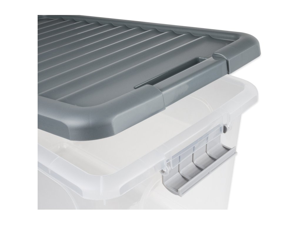 Úložný box W BOX M je ideálním řešením pro uložení Vašeho oblečení, hraček či dalších předmětů, možné využití v domácnosti či v kanceláři, průhledný design poskytuje neustálý přehled o obsahu, postranní klipy pevně drží víko a chrání tak obsah před vhlkostí, prachem a nečistotami, boxy lze skládat na sebe. Rozměry: 49 x 29 x 30 cm (š x d x v), objem 30 l.