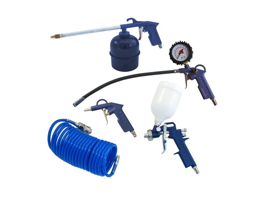 Provozní tlak 12bar stříkací pistole s horní nádobkou, stříkací pistole se spodní nádobkou, pistole na huštění smanometrem, pistole ofukovací, hadice,